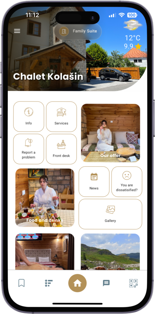 Chalet Kolašin is providing their guests with a unique stay experience thanks to the GuesTool app, which allows guests to access all our offerings and services directly on their phones. With this app, available in 11 languages, our guests can effortlessly order breakfast, schedule massages, request activities like horseback riding and jeep safaris, reserve ski or snowboard equipment, check daily ski news, call taxi services, report issues or request additional services, all with rapid response times.